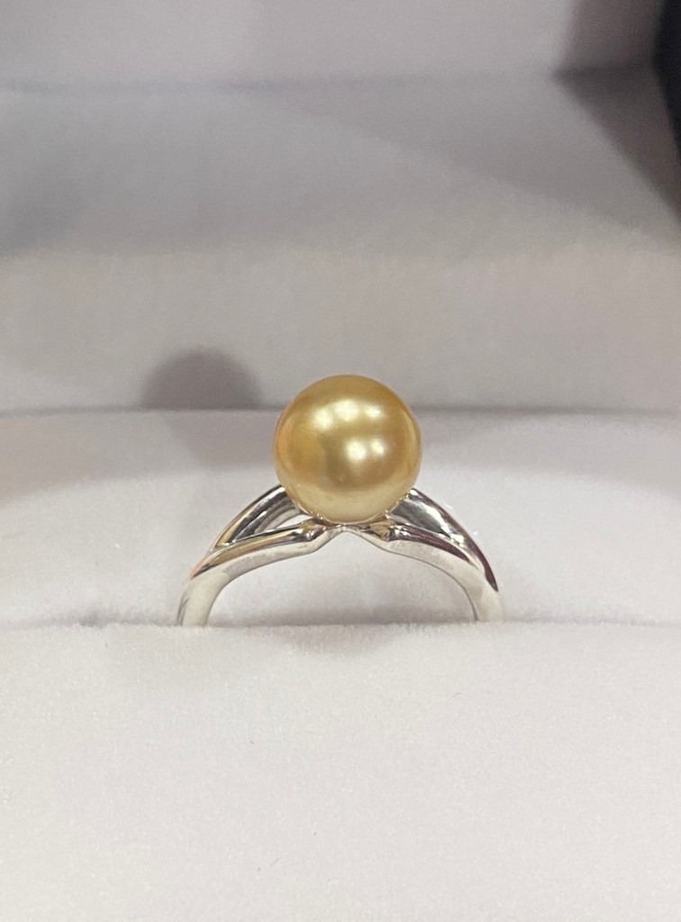 Nous visitons une entreprise qui fabrique des perles, j’achète une bague en argent avec une perle locale dorée.