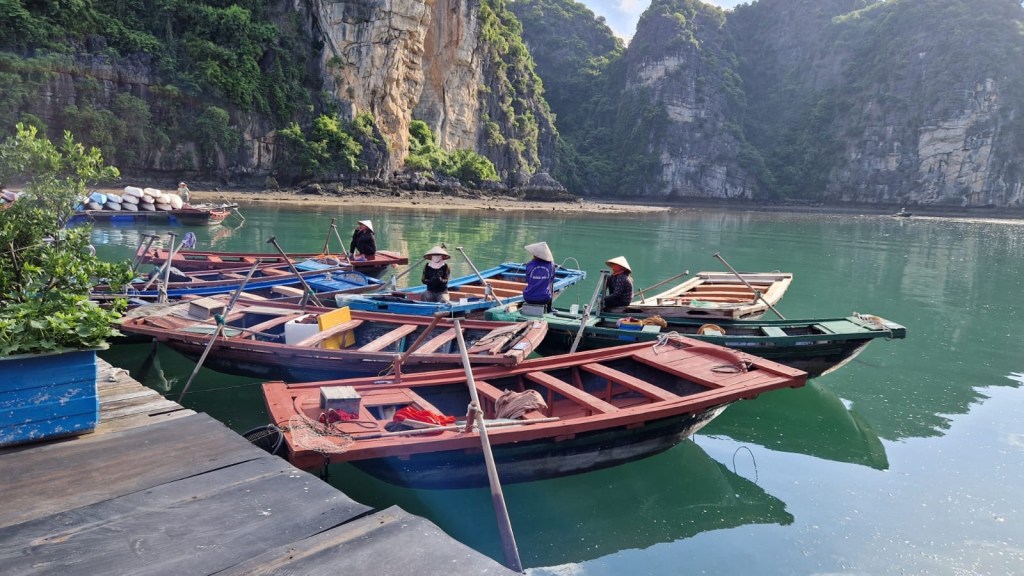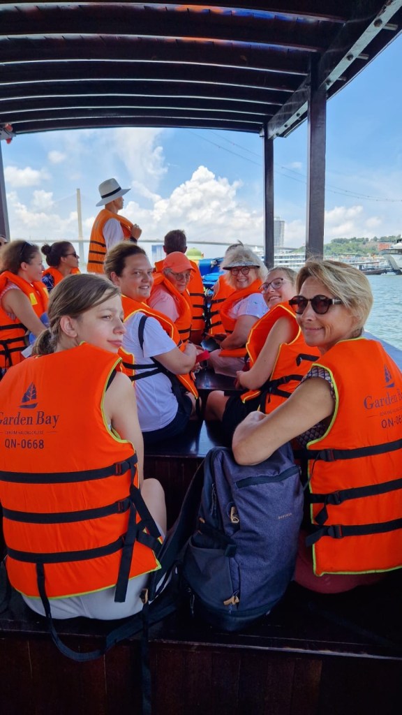 Ensuite visite d’un village de pêcheurs qui vivent sur des maisons flottantes (avec chiens et chats). Le gouvernement essaie de les persuader de mettre un terme à ce mode de vie pour déménager sur le continent. Il faut dire que la côte en face de la baie d’Hap Long est un gigantesque chantier de construction.
