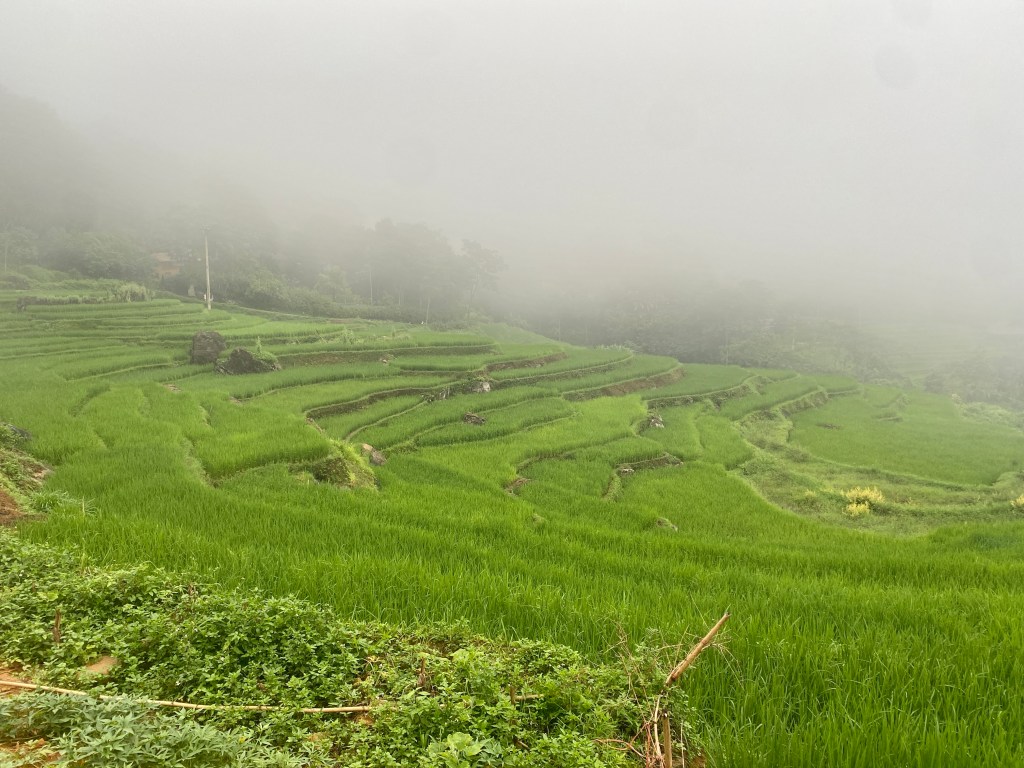 Fin de journée libre pour nous promener au milieu des rizières. Là il ne pleut plus, mais c’est couvert.