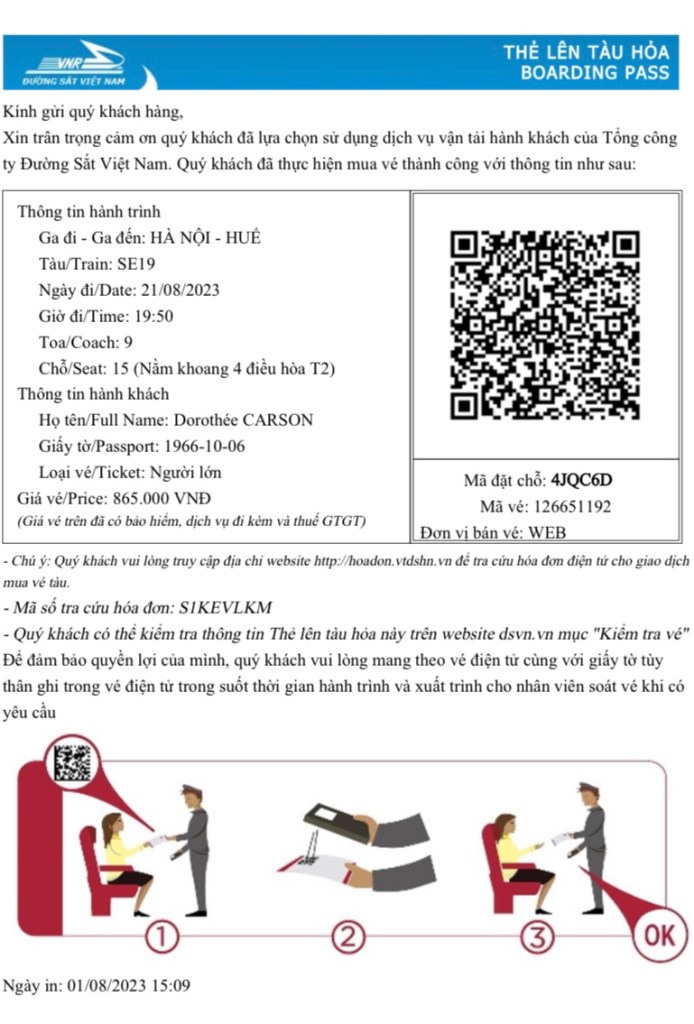 Puis on embarque pour une nouvelle aventure… A bord du train de nuit en direction de Hué. Bien sûr, je n’ai pas fermé l’œil de la nuit, même avec bouchons d’oreille et 2 somnifères.