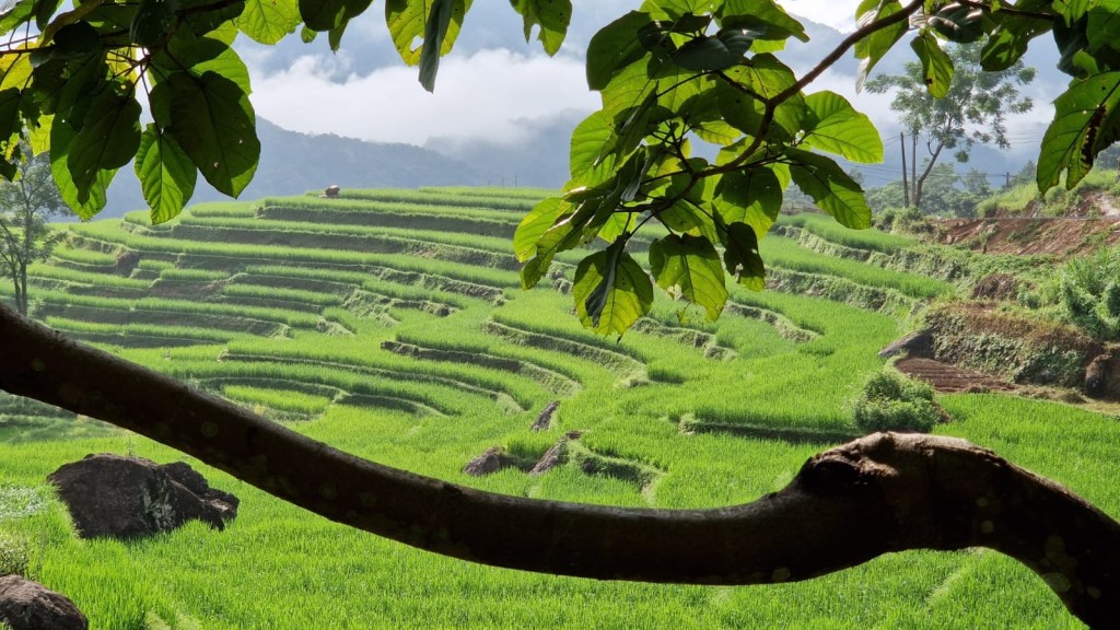 Ce matin, nous chaussons nos baskets, notre guide vous emmène découvrir un village traditionnel nichés derrières les rizières en terrasses. Nous sommes dans la montagne, mais il fait vraiment chaud.