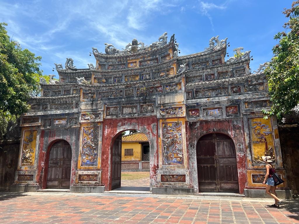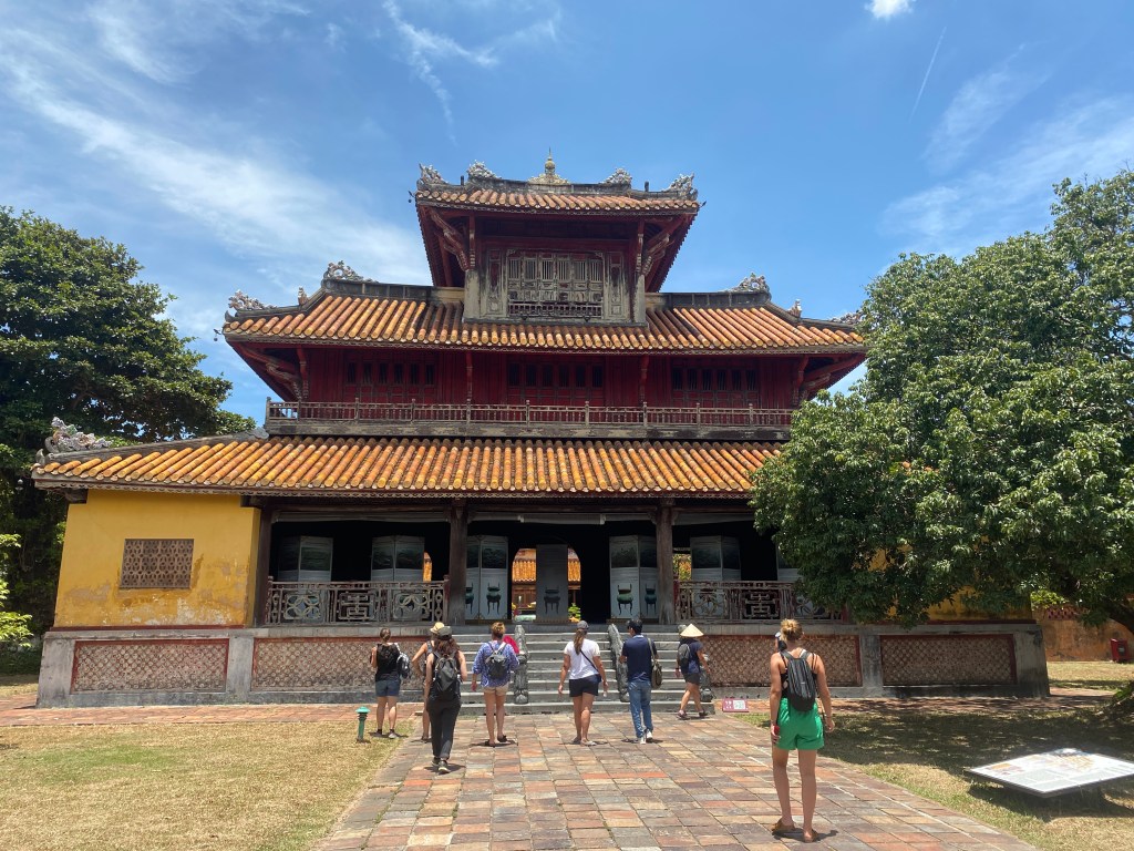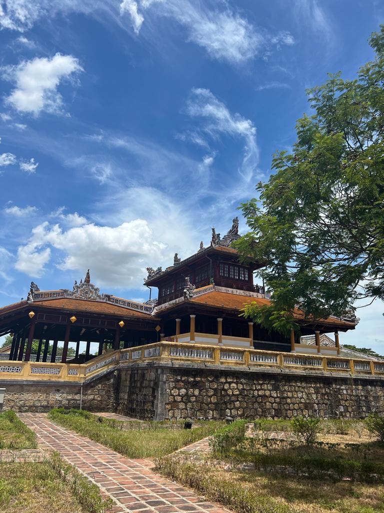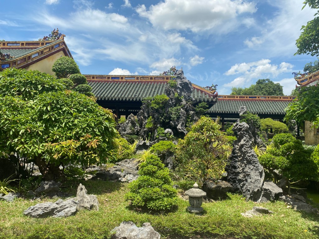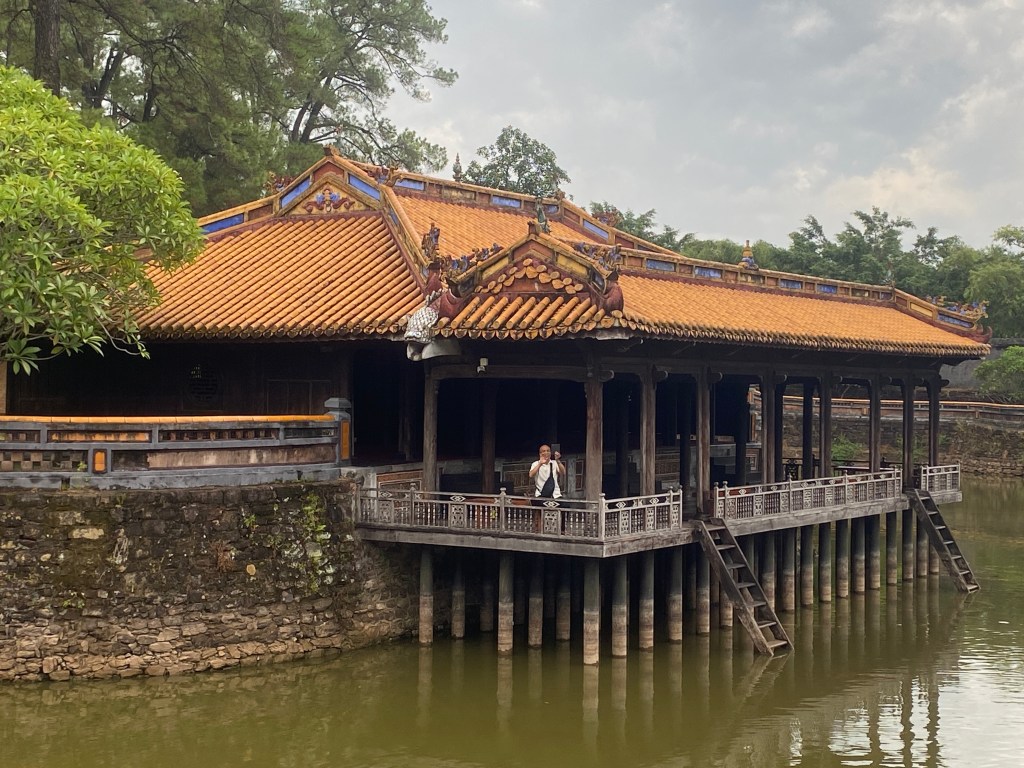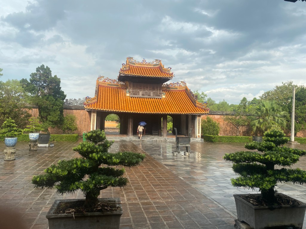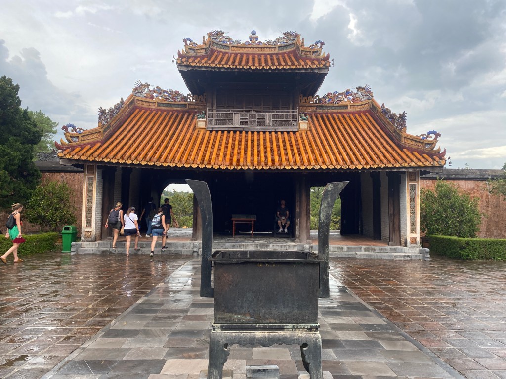 Déjeuner rapide puis visite du Mausolée de l’empereur Minh Mạng. Il a plu un peu, mais quel bonheur!