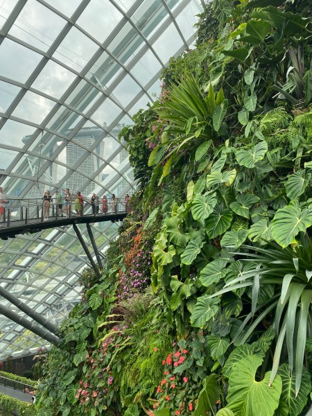 Le second dôme, appelé Cloud Forest, s’étend sur 0.8 hectare. Il reproduit un climat de forêt tropicale en altitude. La température est également autour de 24 degrés mais l’humidité est plus présente, avec un taux proche de 90%. On y retrouve la végétation que l’on peut trouver dans une forêt tropicale à une altitude proche de 2000 mètres.