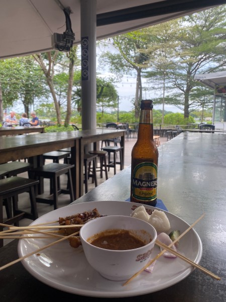 Pour déjeuner, je suis allée à un des lieux conseillés par le guide : j’ai pris du poulet aux cacahouètes – la spécialité – que j’avais découvert en Indonésie.