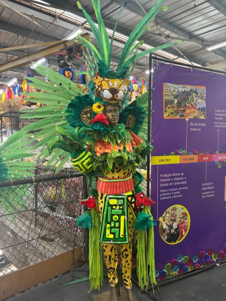 On part en métro pour visiter un lieu où les 12 meilleures écoles de Samba de la ville entreposent leur matériel et leurs costumes. Ce sont ces écoles qui participent à une compétition pendant le Carnaval pour déterminer la meilleure.