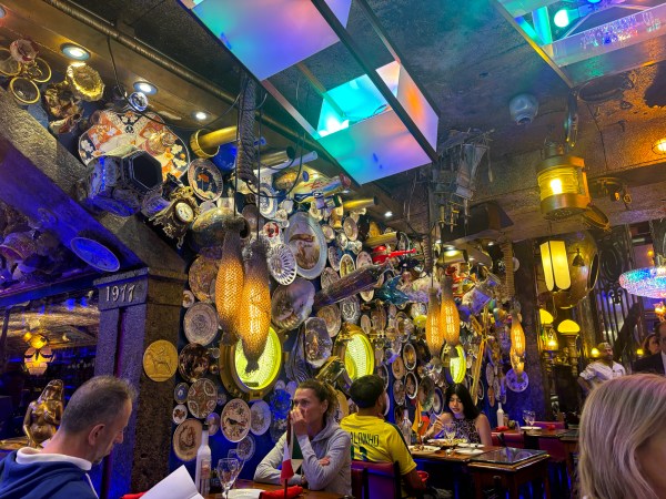Dîner dans un restaurant (très très cher pour ici) mais avec des toilettes rigolotes.