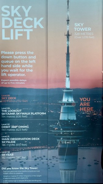 On se dit que c’est le moment de profiter de cette amélioration pour aller en haut de la Sky tower. Ce matin elle était perdue dans la brume.