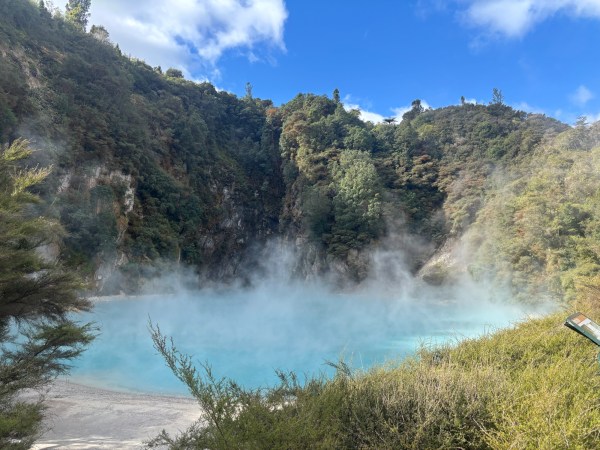 Départ ensuite pour la Waimangu volcanic valley.. L’activité géothermale et volcanique est très présente sur l’île du Nord de Nouvelle-Zélande. Et, de nombreuses attractions existent pour observer ces phénomènes étonnants. Toutes ne se valent pas, et le plus dur est de choisir, car il est impossible de toutes les visiter. Celui ci est le plus jeune complexe géothermal du monde (10/06/1886 suite à une éruption volcanique).