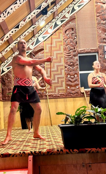 Puis nous assistons à un spectacle Maoris, dont le célèbre Haka (on connaît ce chant de guerre avant les matches de rugby des All Blacks).