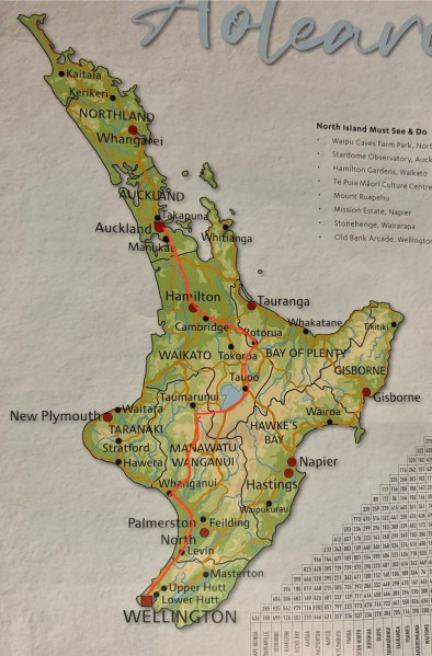 Départ matinal (8h00) car on a beaucoup de route pour Wellington et on aimerait profiter de la ville au maximum, surtout un samedi après-midi. Il y a au moins 4 heures de route.