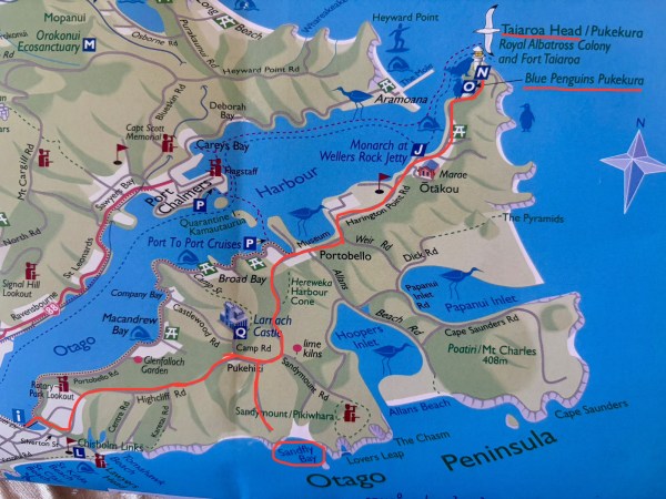 Nous commençons par la péninsule de Otago, nous arrivons vers midi sous un beau soleil. Autant profiter du beau temps pour la découvrir, surtout par la route du haut qui offre les plus belles vues.