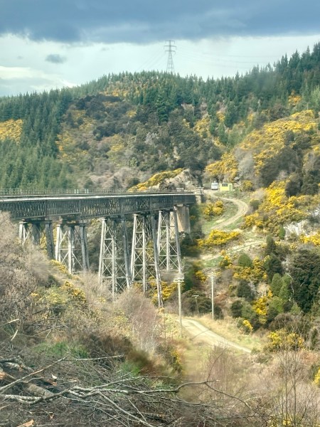 Nous prenons un train qui nous permet de voyager le long des gorges de la rivière Taieri. Cela dure 5 heures AR. Donc on a pris nos sandwiches.
