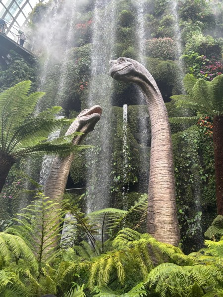 On commence par la forêt dans les nuages. Il y a une exposition Jurassic Parc.